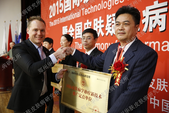 作为河南地区特邀参会单位,郑州肤康皮肤病医院被选为2015皮肤病学诊疗新技术推广定点单位,郑州肤康皮肤病医院代表苏国水主任医师表示:举办2015全国皮肤病学临床床诊疗新技术推广大会,是卫生主管部门对于皮肤病学科发展的高度重视。随着皮肤病学在上发展迅速,基础与临床研究水平不断提高,很多过去被认为是难治性的皮肤科疾病如痤疮、脱发等,目前已获得了很好的治疗效果。